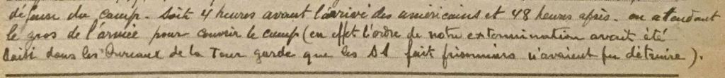 A 12h l’ordre d’extermination du camp selon l’ordre donné par Himmler était arrivé au camp ; mais n’a pas pu être détruit par les SS. Il a été récupéré.