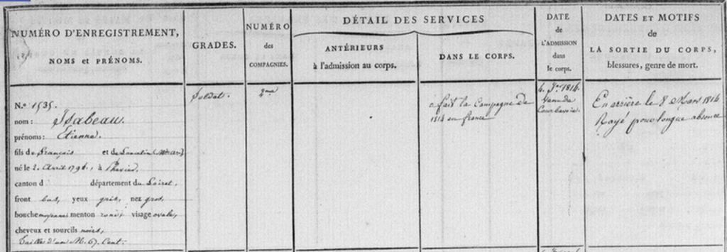 A ses 20 ans, le 4 janvier 1814, Etienne rejoint le Bataillon des Ouvriers d’Administration et reçoit le matricule 1535