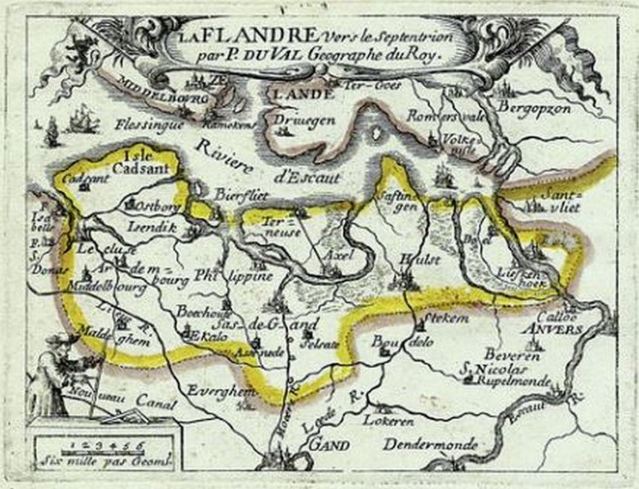 Pieter et son épouse, Neetje BOLLE, mariés vers 1684, auront un fils qu’il baptiseront Lieven. Il sera le dernier en tant que sosa à porter ce prénom. Lieven épousera Pieternella Corstanje le 13 mai 1712 à Axel (P-B) bien qu’elle soit originaire d’Ovezande, village situé sur l’ile de Beveland, encerclée par l’Escaut oriental au nord et l’Escaut occidental au sud.