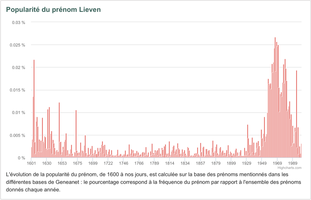Parmi les sosas belgo/hollandais de ma ligne cognatique, on compte pas moins de cinq personnes qui ont porté successivement le prénom Lieven.